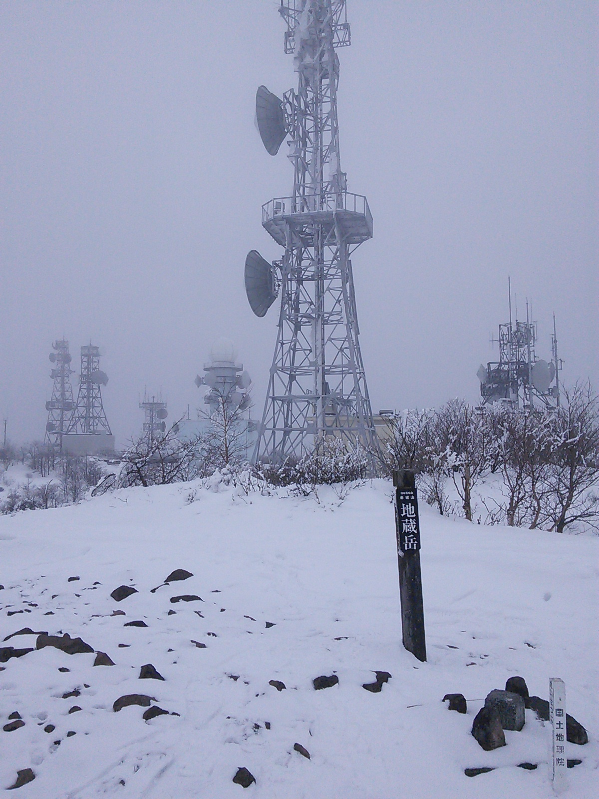 2015年3月8日 赤城山地蔵岳 赤城・皇海・筑波 2015年03月09日 0 この日は曇っていて小雪が降る天気でした。風はなく、暖かいのは助かりました。大沼側の登山口から登り始めましたが、いきなり直登が続くのでちょっと参ります。雪は湿っていて重い感じ。 前方に山頂の電波塔が見えてきました。ここまで登ると雪は乾いていて、踏むときゅっきゅっという感触になります。 案外あっけなく山頂に着きました。昼食をとる登山者で山頂は賑やかです。ガスで遠くは見えませんが、凍った大沼上でワカサギ釣りをする人々が見えます。時折、ガラガラと音を立てるのは、電波塔に付いた雪と氷が落ちる音でした。山頂で昼食を食べ終わったら小沼側に下山します。スノーシューを履いて辺りを散策してみました。 血の池ですが、雪が積もっていて血の色どころか、池なのかどうかもよくわからない状態です。次に小沼へ。スノーシューで歩いているグループがいました。何かのイベントでしょうか。峠からの眺める覚満淵です。その向こうに少しだけ見えているのは大沼。覚満淵のまわりを歩いてみました。 大沼。青空が少し見えますね。釣り人たちも引き上げ始める時間帯のようです。雪が湿っていて、スノーシューで歩くと重かった。暖かいのはいいんですけどね。雪歩きはこのくらいにして、そろそろ春の山を歩こうかな。2015年10月12日 黒檜山・赤城山駒ヶ岳・長七郎山 [0回]PR
