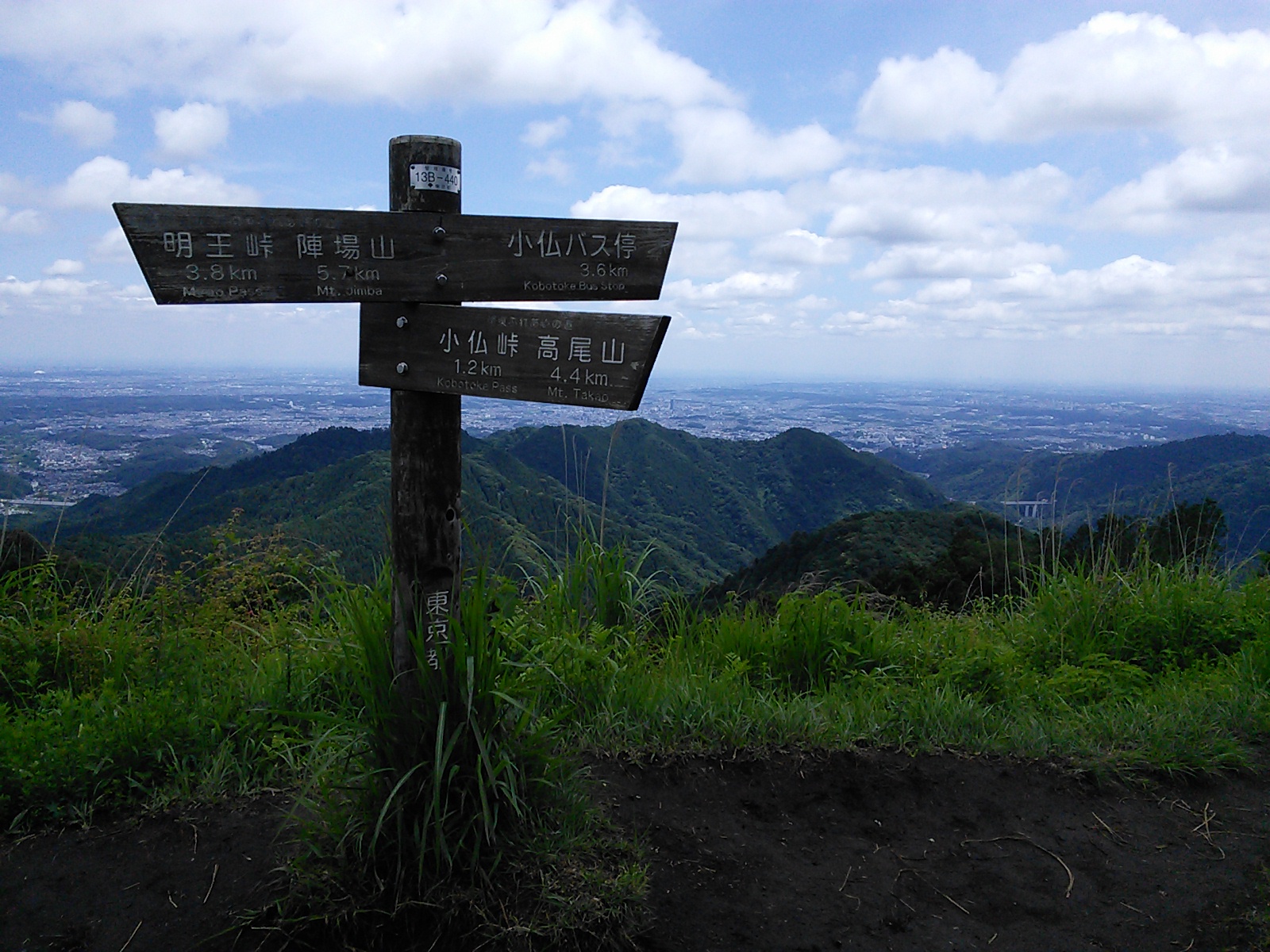 2015年6月20日 陣馬山・高尾山 高尾・陣馬 2015年06月22日 0 天気がどうも信用できないというか降られそうな気もしたので、この日は定番の陣馬高尾縦走路を歩くことにしました。新ハイキングコースは使わず、藤野駅から一ノ尾根を通って陣馬山頂を目指します。駅から北にしばらく歩いていくと陣馬山登山口の道標があるのでそこで右に折れます。民家の間を通るつづら折りの舗装道を登っていくと登山道に変わります。こちらのルートは人が少なく、静かな雰囲気で歩けます。特に歩きにくい箇所もなく、前日の雨にも関わらず水溜りやぬかるみもありません。 順調に歩いて、陣馬山頂に着きました。写真の通り、朝のうちは青空も見えていました。高尾山方面に歩いていきますが、トレイルランナーと多くすれ違います。なんだかハイカーより多いくらいですね。陣馬山から先は、登山道に水溜りや泥濘化した箇所がたくさん出てきます。 明王峠です。 堂所山にも登ってみました。どうでもいいことですが、この日は「巻き道は使わない」という自己ルールが何故か頭に浮かんだので、それに従ってみました。そんなにストイックさを追求するタイプではないので、単なる気まぐれです。 景信山からの眺めです。スカイツリーくらいは見えました。広々としていいですね。山頂は多くの人で賑わっています。 小仏峠。茶屋の跡と地図屋さん。高尾山周辺や奥多摩、丹沢などの詳細な地図を作って売っています。 小仏峠付近から相模湖方面を望む。 小仏城山まで来ました。ここも眺めがいいですね。 茶屋でなめこ汁を注文。ちょっと遅い昼食にします。ここから高尾山にかけては木の階段や木道で整備されています。いつの間にかトレイルランナーたちは姿を消し、カジュアルな服装で歩く人たちが増えています。 一丁平の展望台。 このルートは、高尾から大阪まで続く、総延長1697kmの東海自然歩道の一部でもあります。これを全部踏破する人もいるんですよね… もみじ台の茶屋にて。程なく高尾山頂に到着。多くの人々で賑やかな山頂を通り抜けて、薬王院にお参りに行きます。 薬王院は真言宗智山派のお寺(有名な成田山新勝寺や川崎大師と同じ)ですが、写真のように、立派な鳥居があります。高尾山では今でも修験道の実践が続いていますが、神仏習合の風が残っているのもそのせいでしょうか。薬師如来とともに飯綱権現を本尊としているところも特徴的です。飯縄権現は飯縄山の神様で天狗の姿で表されます。お参りの後は、賑やかな参道を外れて2号路を使って下山します。この時間から登ってくる人と結構すれ違うのも高尾山ならではといったところでしょうか。そのまま歩いて、リニューアルした高尾山口駅へ。心配した雨にも降られず、また午後になってもあまり暑くならず、快適に歩けました。高尾山も悪くないと改めて思う山歩きでした。その後:2015年9月5日 臼杵山・市道山・醍醐丸・陣馬山2015年10月18日 石老山・嵐山・小仏城山・高尾山2016年3月21日 北高尾山稜・陣馬山 [0回]PR