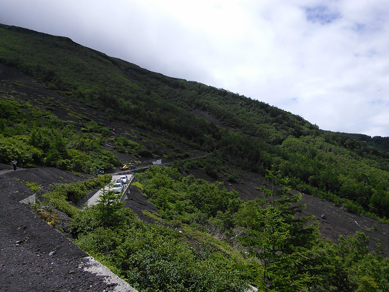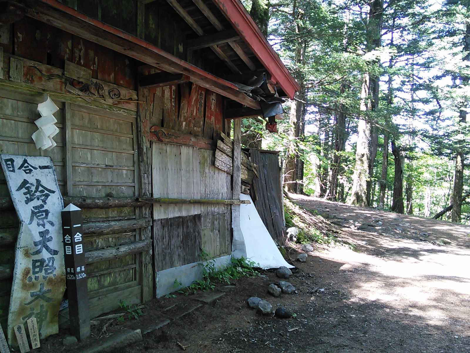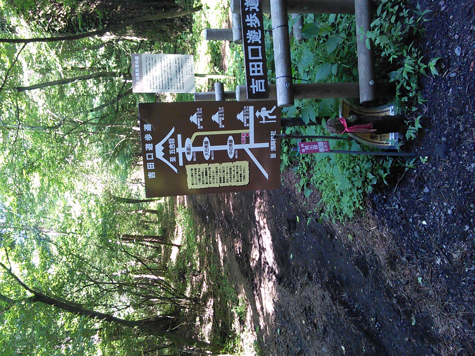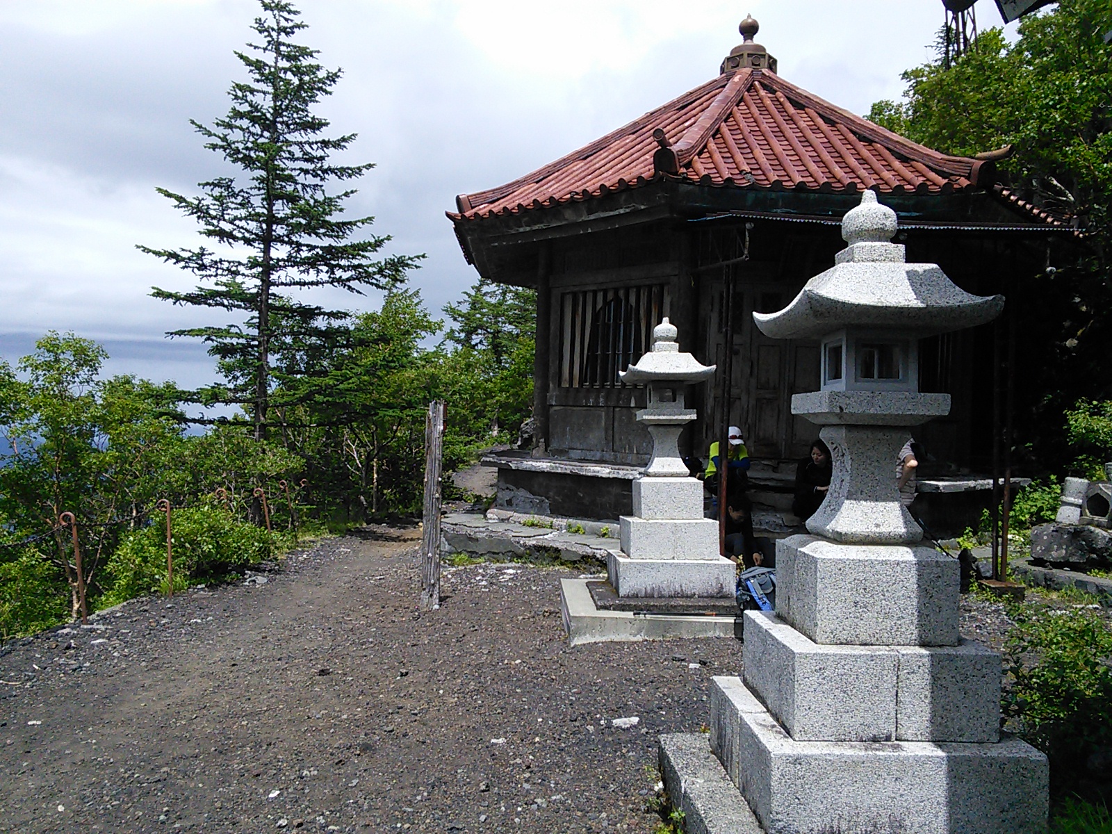 2015年7月19日 吉田口遊歩道・富士山六合目 富士山・御坂・愛鷹 2015年07月21日 0 富士山の六合目まで登ってきました。 まず富士山駅近くの北口本宮冨士浅間神社にお参りします。 浅間神社の近くから馬返しまで、吉田口遊歩道を歩いていきます。この辺りは今から400年ほど前の寛永年間に赤松が植林されたということで、今でも赤松の多い森になっています。富士山という火山の麓には、痩せた土地に強い赤松が合っていたのでしょうか。 びっくりするほど真っ直ぐ続く道で、富士山の裾野の広さを実感します。暑いことは暑いのですが、樹の陰を歩いていくのでそれほど辛くはありません。もう少し涼しい季節に歩いたら最高でしょう。あまり歩いている人はいないのですが、隣に並行して一般道があるので車の音は始終聞こえます。 何度か車道を横切って遊歩道を進むと、馬返しに着きました。ここから富士登山の本番、と言ったところでしょうか。 馬返しから一合目まではすぐです。トレイルランナーが多いですね。 立派な針葉樹の森になっています。コメツガ、シラビソ、カラマツなどが生えています。亜高山帯、でいいのかな?このあたりはもう、かなり涼しくなっています。 二合目。今は廃屋になった御室浅間神社があります。 三合目の廃屋。 見晴らしもあります。 いつの間にか背の低い木ばかりになってきたと思っていると、佐藤小屋に着きました。高木がないので、風景がすっかり変わります。朝に下から富士山を見たときは、頂上が笠のような雲に覆われていましたが、ここから見上げても頂上の方は雲がかかっています。 もう少し登っていくと、六角堂が見えてきました。 六合目の安全指導センター付近にて。 六合目付近で、富士スバルラインから登ってくるルートと合流しています。海外から来たらしき人も多いですね。今日は頂上には行かないので、富士スバルライン五合目に向けて下っていきます。 ハイシーズンということで、富士スバルライン五合目は多くの人で賑わっていました。小御嶽神社にお参りして、今日の山歩きは終了です。山頂を踏むのはまたの機会にします。2015年8月12日〜13日 富士山(吉田ルート) [0回]