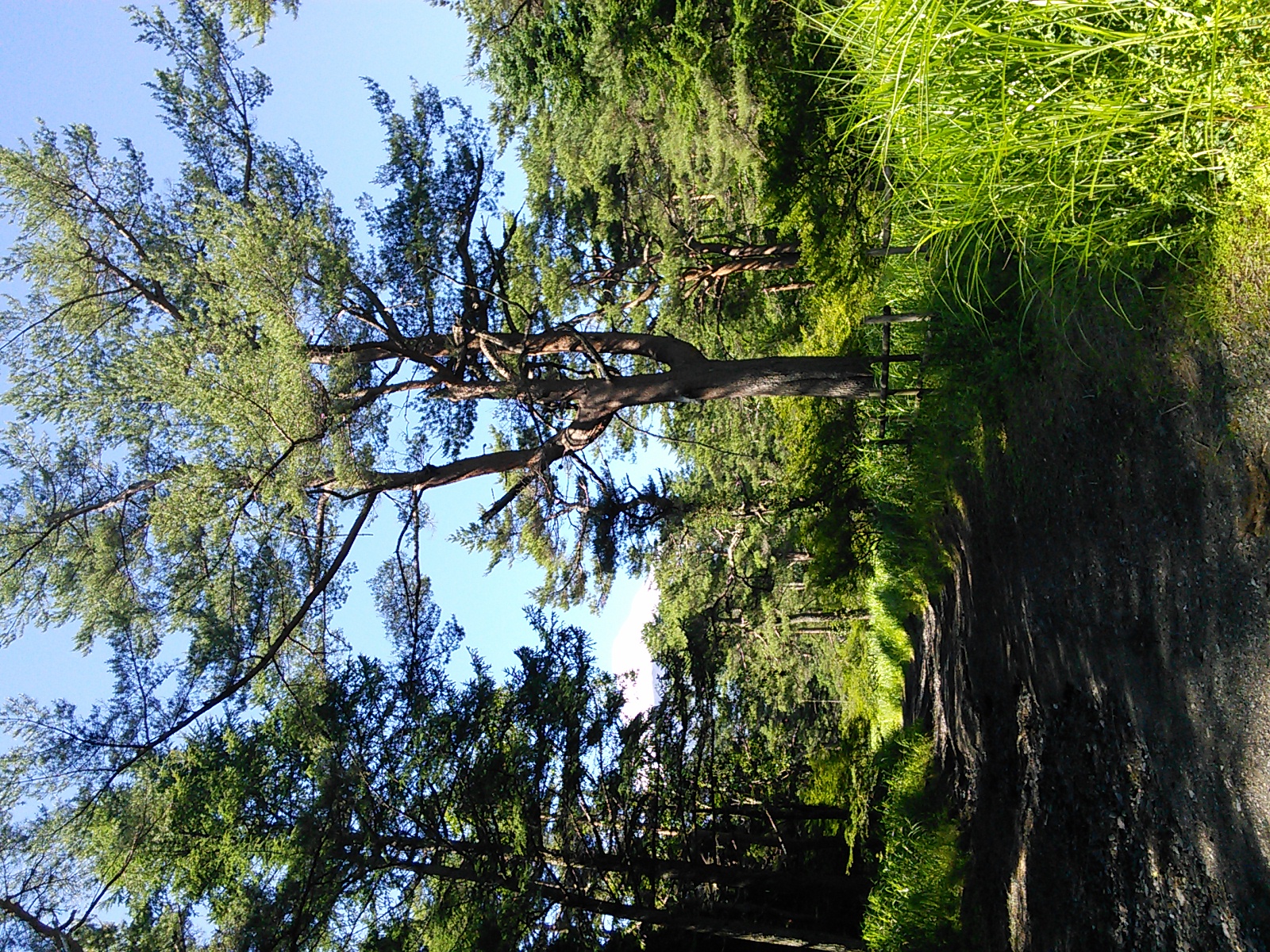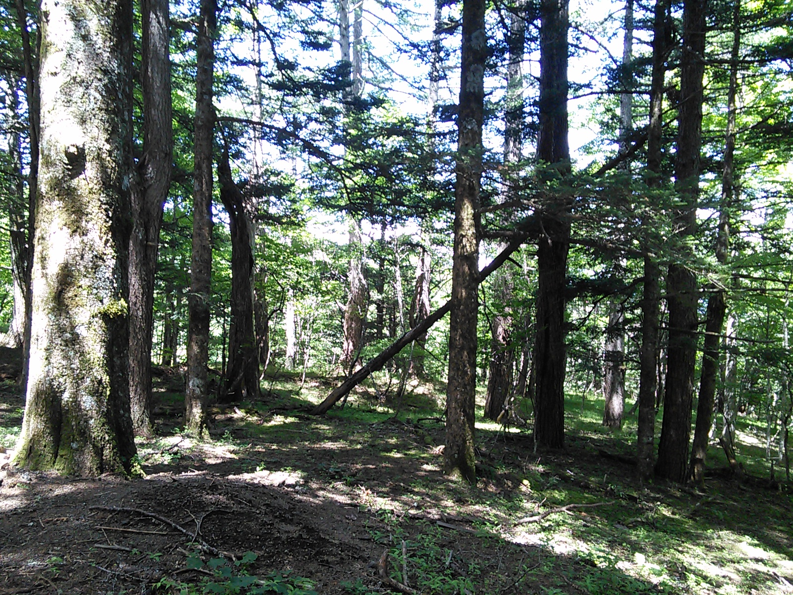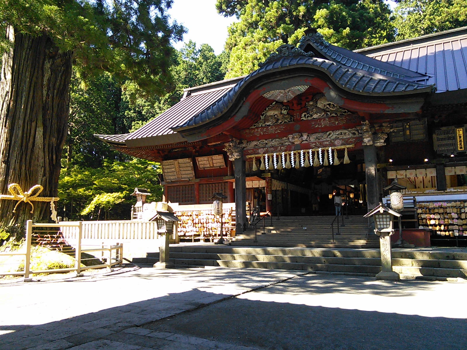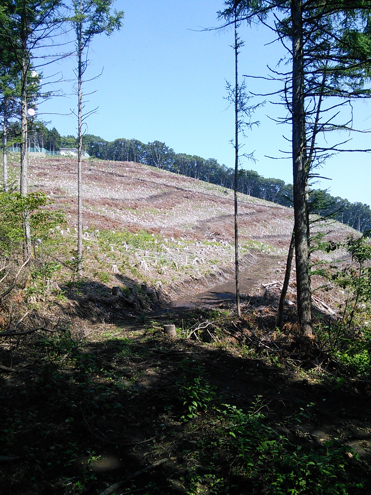 2015年7月19日 吉田口遊歩道・富士山六合目 富士山・御坂・愛鷹 2015年07月21日 0 富士山の六合目まで登ってきました。 まず富士山駅近くの北口本宮冨士浅間神社にお参りします。 浅間神社の近くから馬返しまで、吉田口遊歩道を歩いていきます。この辺りは今から400年ほど前の寛永年間に赤松が植林されたということで、今でも赤松の多い森になっています。富士山という火山の麓には、痩せた土地に強い赤松が合っていたのでしょうか。 びっくりするほど真っ直ぐ続く道で、富士山の裾野の広さを実感します。暑いことは暑いのですが、樹の陰を歩いていくのでそれほど辛くはありません。もう少し涼しい季節に歩いたら最高でしょう。あまり歩いている人はいないのですが、隣に並行して一般道があるので車の音は始終聞こえます。 何度か車道を横切って遊歩道を進むと、馬返しに着きました。ここから富士登山の本番、と言ったところでしょうか。 馬返しから一合目まではすぐです。トレイルランナーが多いですね。 立派な針葉樹の森になっています。コメツガ、シラビソ、カラマツなどが生えています。亜高山帯、でいいのかな?このあたりはもう、かなり涼しくなっています。 二合目。今は廃屋になった御室浅間神社があります。 三合目の廃屋。 見晴らしもあります。 いつの間にか背の低い木ばかりになってきたと思っていると、佐藤小屋に着きました。高木がないので、風景がすっかり変わります。朝に下から富士山を見たときは、頂上が笠のような雲に覆われていましたが、ここから見上げても頂上の方は雲がかかっています。 もう少し登っていくと、六角堂が見えてきました。 六合目の安全指導センター付近にて。 六合目付近で、富士スバルラインから登ってくるルートと合流しています。海外から来たらしき人も多いですね。今日は頂上には行かないので、富士スバルライン五合目に向けて下っていきます。 ハイシーズンということで、富士スバルライン五合目は多くの人で賑わっていました。小御嶽神社にお参りして、今日の山歩きは終了です。山頂を踏むのはまたの機会にします。2015年8月12日〜13日 富士山(吉田ルート) [0回]