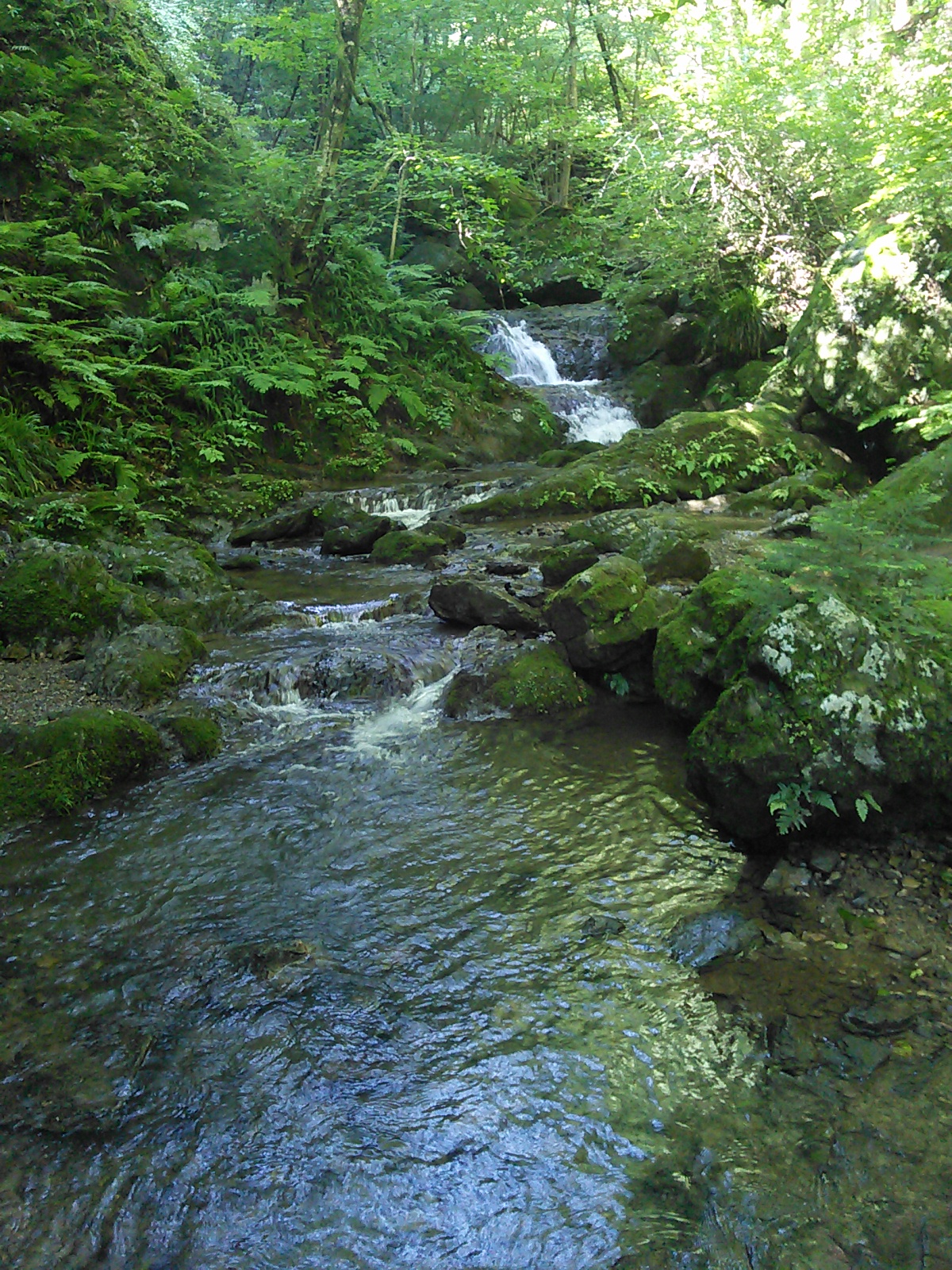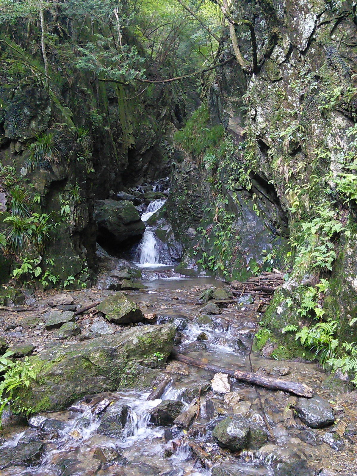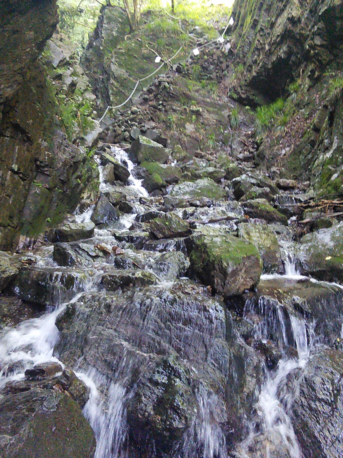 2015年7月25日 棒ノ嶺(白谷沢) 奥武蔵・秩父 2015年07月26日 0 暑そうなので、今回もさっと登ってさっさと下りてくる方式でいきます。棒ノ嶺は今年は三回目ですが、白谷沢コースは今年初めてです。2015年3月25日 高水山・岩茸石山・棒ノ嶺2015年5月30日 川苔山・日向沢ノ峰・棒ノ嶺 有間ダム(名栗湖)の湖畔を通って登山口に向かいます。朝ですが、既に暑い。 登山口からしばらくはこんな感じの道です。杉の人工林だと思いますが、なかなか雰囲気があって悪くないですね。羊歯の下生えに苔むした杉の幹、まるで太古の森を歩いているような、と言ったら大袈裟ですが。 岩の上をナメて水が流れています。このあたりからが一番楽しい箇所です。 沢を何度も徒渉しながら進んでいきます。足を濡らしたくない人は、防水シューズ必須です。沢の上は空気が涼しい! 水と緑が美しい。 この岩の間を通っていきます。 沢の上を歩いて遡っていくような気分。 楽しいコースです。 鎖が付いている箇所もありますが、特別な技術や体力は必要ありません。注意深く進みましょう。 細い流れが滝のようになっています。 楽しかった沢の道とお別れして、林道を横切ります。ここからは結構急な坂道が続きます。しかも暑い。 登山道の真ん中に白い花が咲いていました。オオバギボウシ(大葉擬宝珠)でしょうか。夏に咲く花で、白の他に薄紫の花もあるようです。 頂上に着きました。暑いので頂上でのんびりする気も起きず、一息ついたら下山します。下りもやっぱり暑い。汗をダラダラかきながら歩いていきます。道が濡れていて滑り易くなっているのも疲れます。それでも予定通り午前中に下りてくることができました。前に白谷沢を登ったのは初冬だったのですが、今回の方が水量があってよかった気がします。 [0回]