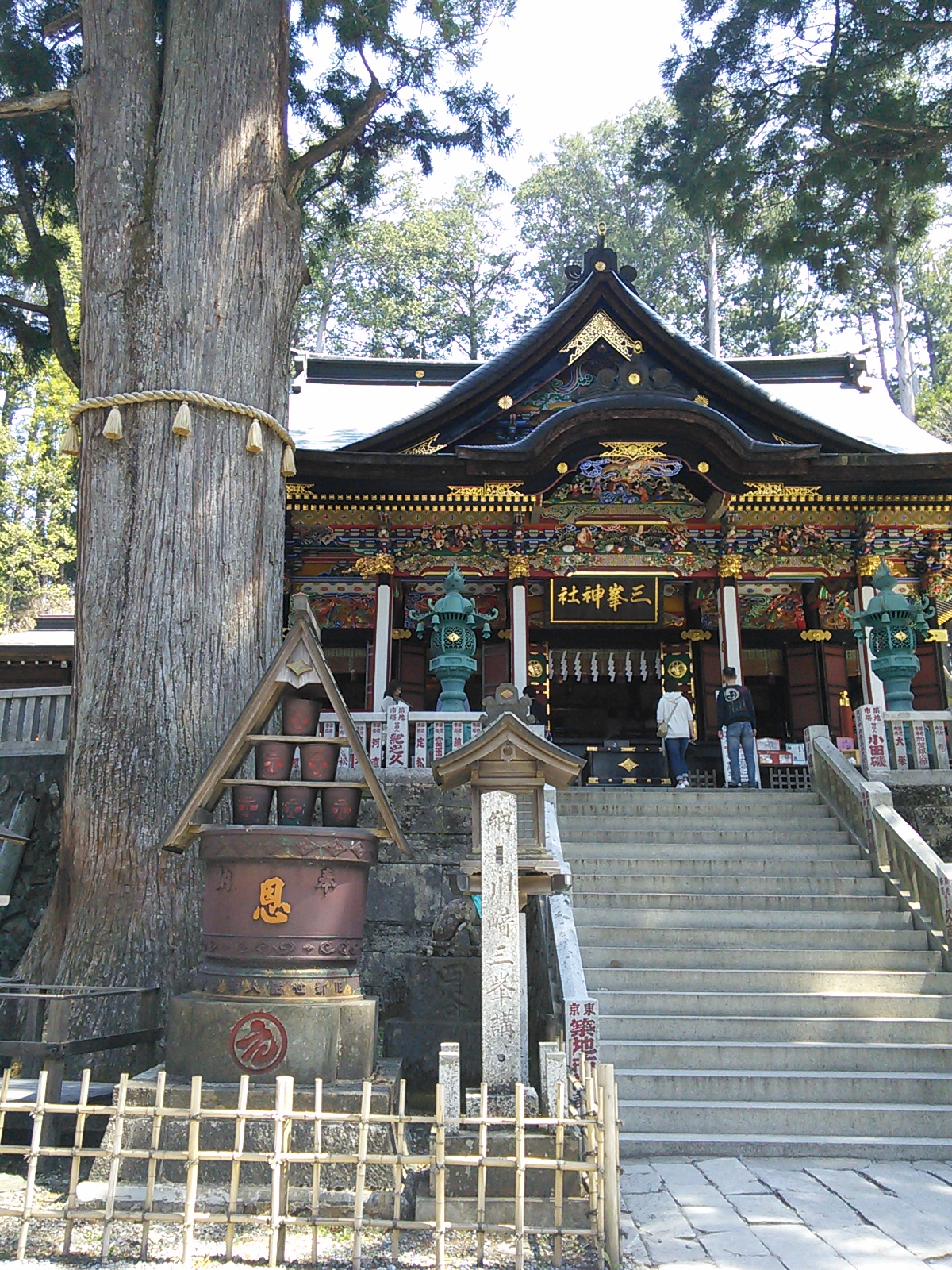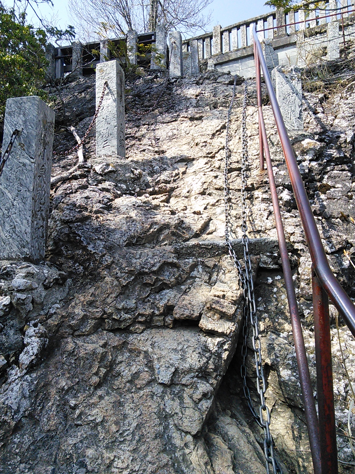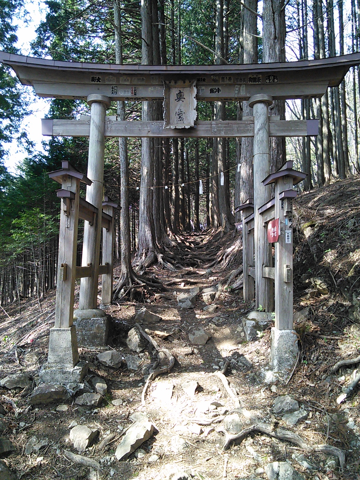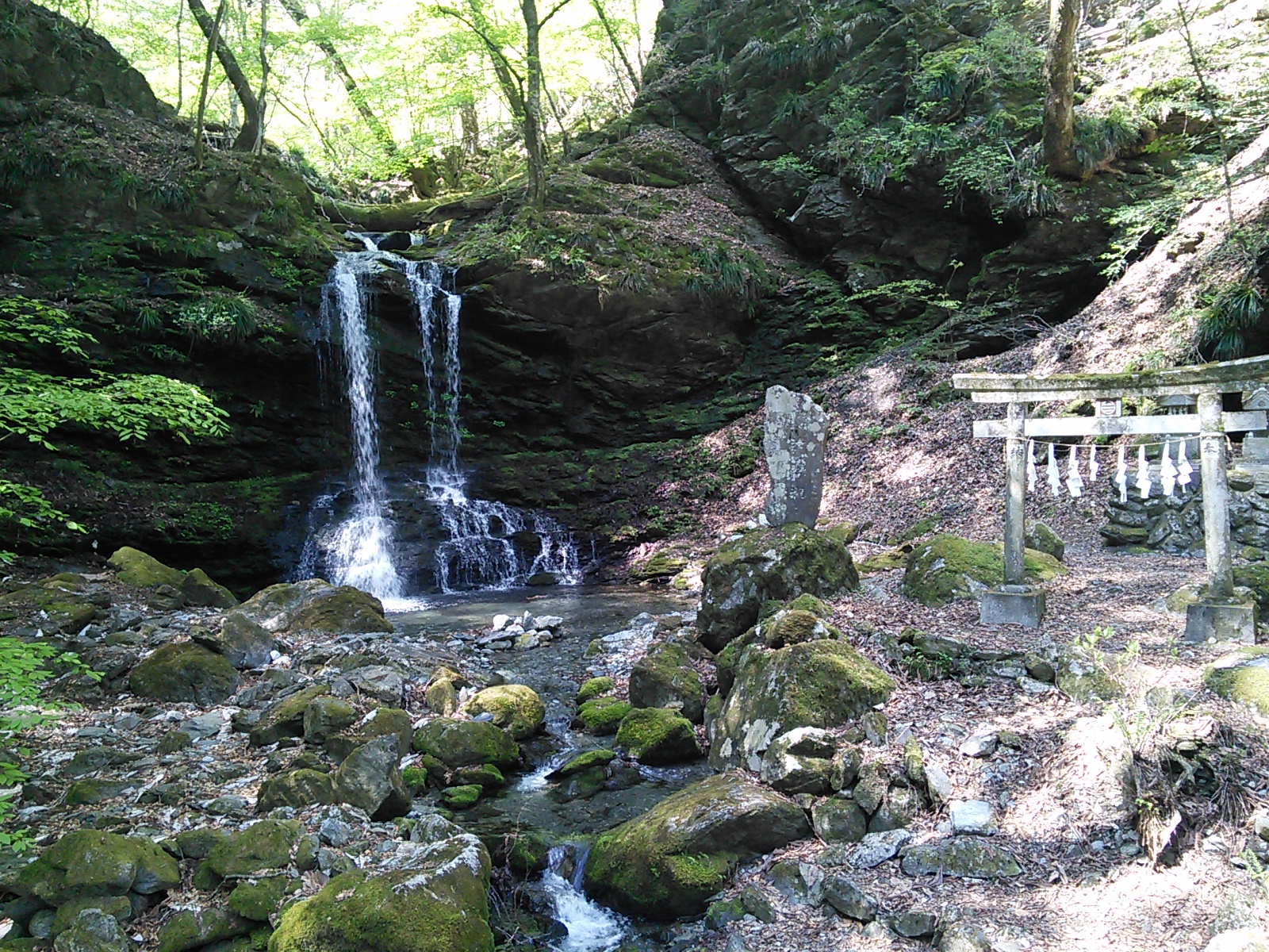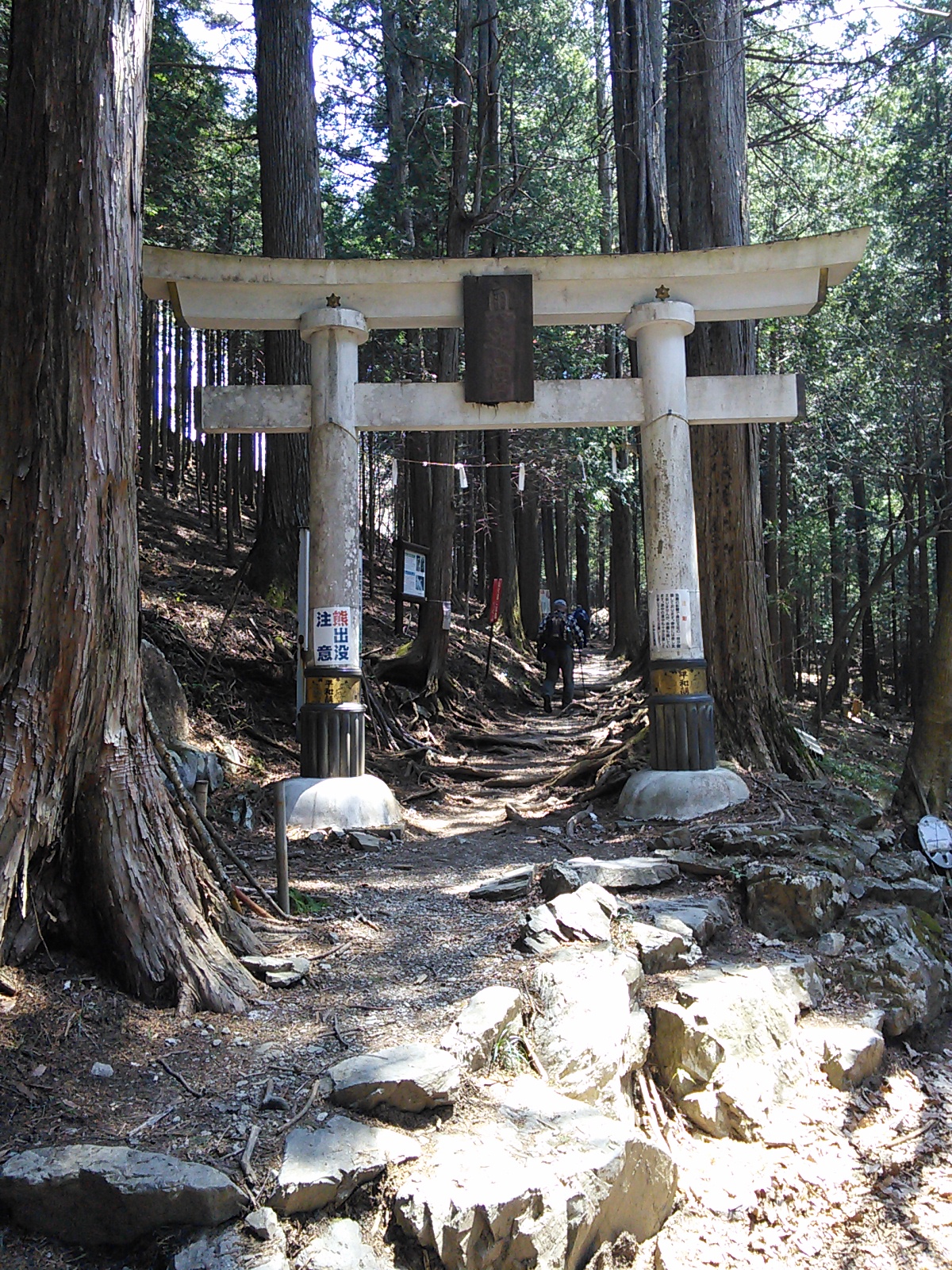 2015年4月26日 三峯神社表参道・霧藻ヶ峰・妙法ヶ岳 奥秩父 2015年04月27日 0 三峰口駅からバスで大輪へ。 車道の脇にある鳥居をくぐって… 登竜橋で荒川を渡ると… 三峯神社への表参道です。雰囲気があっていいですね。石碑に「是より本社五十二丁」とあります。一丁は約109メートル。この先、参道の所々に丁目石があります。古くから多くの人に利用された道だけあって歩きやすい。いい季節で日曜日なのに歩く人は少ないみたいです。今は車で行く人が多いですからね。 清浄の滝です。かつてはここで身を清めてから参拝したとか。清流には山椒魚など貴重な生物が棲んでいますので、現代では水を汚さないようにしなければいけません。 かつて薬師如来堂があった場所だそうです。ベンチや四阿があり、休憩ができます。 さあ三峯神社に着きました。立派な門です。たくさんの人が参拝に来ていました。 写真にある杉は畠山重忠が寄進したものと伝えられています。重忠は鎌倉幕府成立期に活躍した武将で、その清廉な人格で知られています。後に謀反の疑いをかけられ滅ぼされました。悲劇の人物でもありました。奥多摩の高水山のお寺も重忠と所縁があったようです。 御札を頂きました。御使いは狼です。狛犬も狼を象っています。秩父地方の特徴ですね。 昼食をとった後、賑やかな神社付近をあとにして、雲取山方面へ進みます。雲取で一泊したらしい登山者とよくすれ違います。地蔵峠まで来ました。このほんの少し先に三角点があり… 秩父宮御夫妻の記念レリーフの先に… 霧藻ヶ峰休憩所があります。ここにはちゃんと管理人さんがいます。ちょっと霞んでいましたが、ここから両神山がよく見えました。さて今日はピストンなので、ここで引き返します。 往路と同じルートを引き返すわけですが、妙法ヶ岳の三峰奥宮を訪れてみます。三峰神社と妙法ヶ岳の間のルートは、車で来たらしい普通の服装の人も歩いています。 急な階段の先に鎖場があります。大した高さではないので難しいことはありませんが、気をつけて登ります。 奥宮に着きました。さあ、引き返すとしましょう。神社の近くの店でソフトクリームを買って食べました。普段はソフトクリームなんて食べたくならないのですが、疲れていると甘いものが欲しくなるようです。好天で日差しが強いので冷たいものがうれしい、というのもあります。帽子と日焼け止めの用意をして正解でした。標高がそれなりにあるせいか気温はそれほど高い気がしなかったのですが、日差しはまた別ですね。その後、順調に大輪まで下りることができました。表参道は人が少なく静かで、新緑と水の美しさが印象的でした。秩父の歴史と春を感じる山歩きでした。2015年4月29日〜30日 雲取山 [0回]