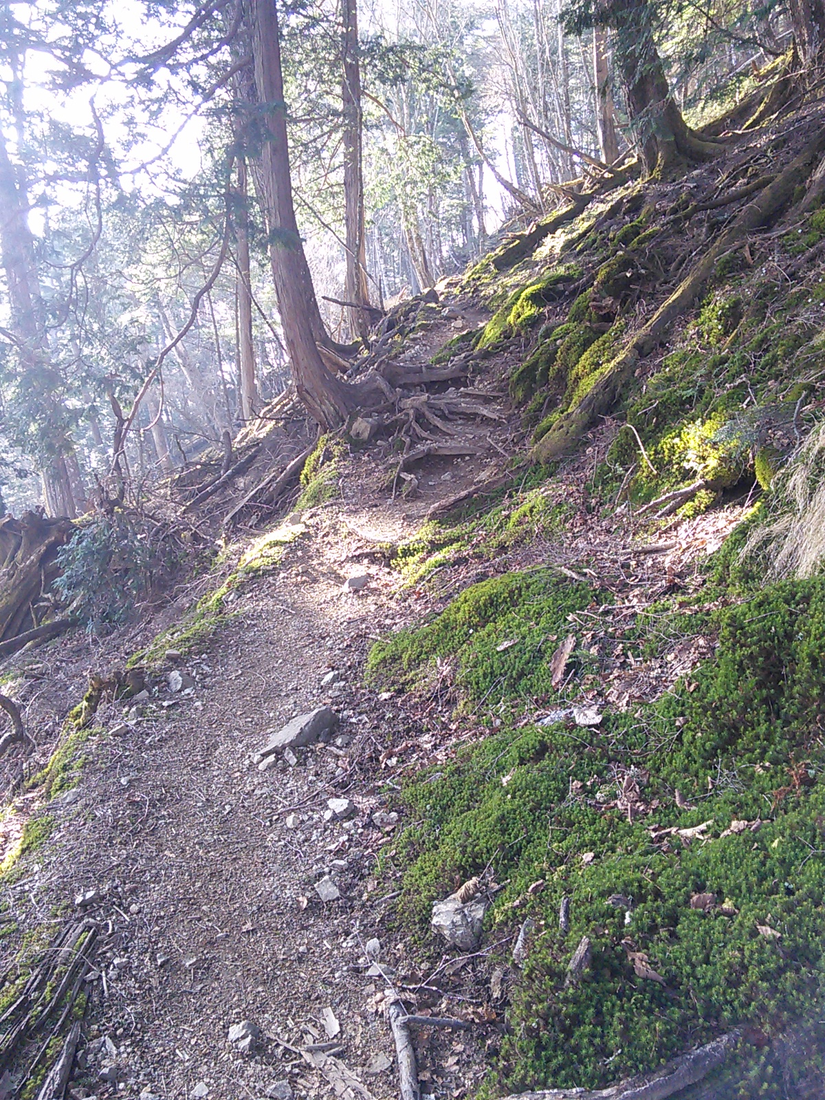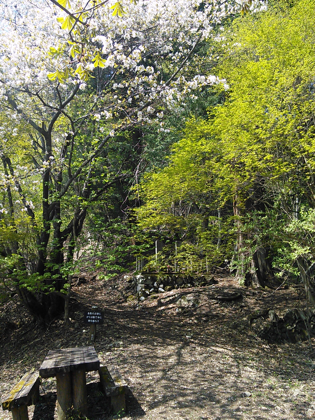 2015年4月19日 御前山・奥多摩むかしみち 奥多摩 2015年04月21日 0 武蔵五日市駅から出るバスに乗り、小沢のバス停で降ります。南側から御前山頂を目指します。 登山口からすぐのところにある石仏。 程なく、前方に大きな岩が見えてきました。これがうとう岩でしょう。ここは岩っぽい道になっていますが、特に難しいところはありません。その後、湯久保尾根を進みますが、急な傾斜もなくダラダラと登っていく道です。ちょっと退屈かもしれません。 山頂につきました。たくさんの人がいます。南側から登る人は少なく、北の奥多摩湖側から登ってくる人が多いようです。ここで昼食にします。午後から雨の可能性があるとの予報でしたが、ここで細かい雨が振り始めました。下山を始めることにします。避難小屋の前を通り、北の方へ下りていきます。御前山の北側は体験の森と名付けられて、公園のように整備されていました。雨は細かいものが少し降っては止んで、しばらくしてまたちょっと降るという具合で、大したことはありません。 写真は体験の森の風景です。この日は所々でまだ桜が見られました。カタクリの花もありました。残念ながら栃寄沢沿いの登山道はまだ復旧していません。境橋まで、結構な距離の舗装道を歩かなければなりませんでした。境橋でバスを待ってもよいのですが、奥多摩駅まで続く奥多摩むかしみちを歩いて見ることにします。 写真はむかしみちの中でも雰囲気のいい箇所です。奥多摩駅までのむかしみちは、舗装道が多いですが、砂利道もあったり、生活道だったりで統一感はありませんね。 ほどなく奥多摩駅に着きました。御前山は人気の山だけあって人が多く、この日歩いたルートはとても歩きやすいものでした。登山道の復旧が済んだらまた来ようと思います。その後:2016年4月16日 御前山・大岳山・日の出山 [0回]