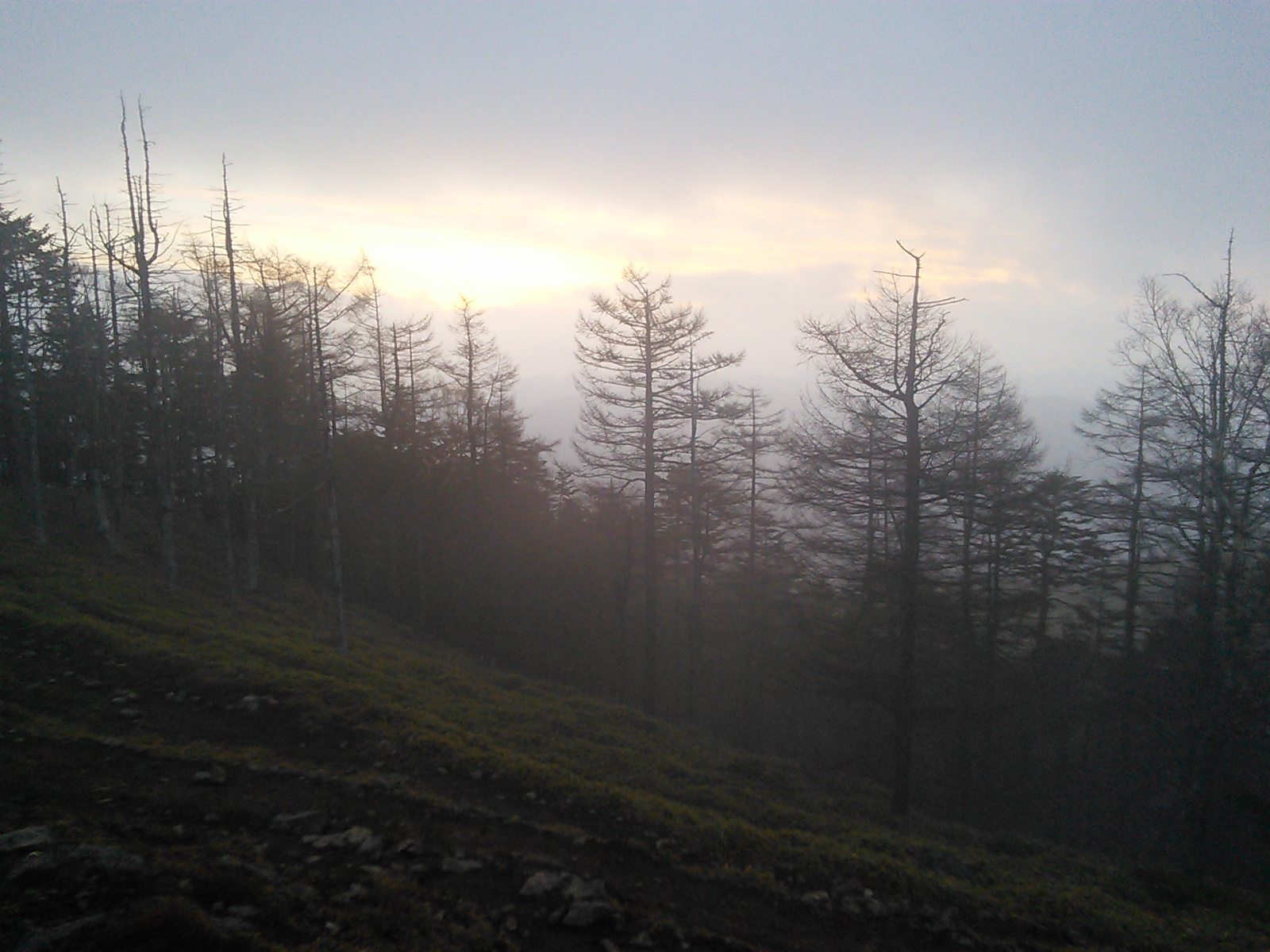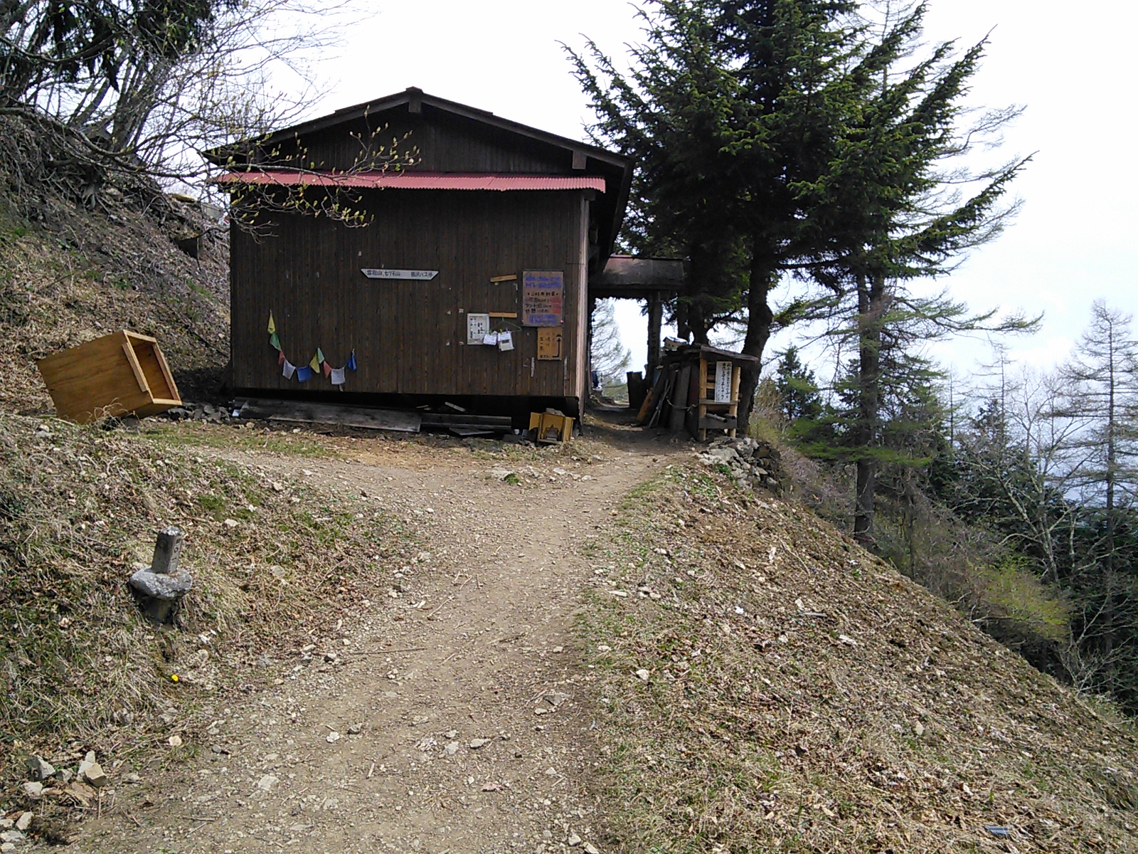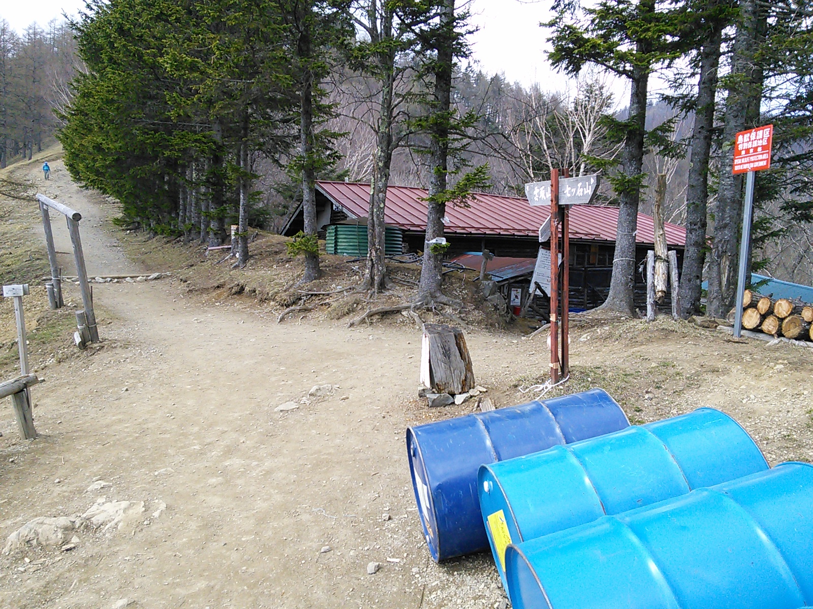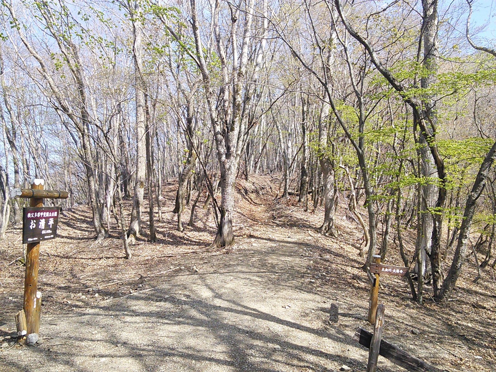 2015年4月29日〜30日 雲取山 奥多摩 2015年05月01日 0 予想されたことですが、この日の奥多摩駅は大盛況。鴨沢方面行きのバスも増発されました。とはいえ奥多摩湖で降りる人が多く、そこから先は座っていけました。鴨沢でバスを降りると、安全指導のために山梨県警の人たちがいました。大型連休に入って登山客の増加して事故の確率も上がるということでしょう。登山届は提出済みなので、危険箇所マップと遭難者の情報提供依頼の紙だけ受け取ります。鴨沢からの登りは特に険しくもなければ、難しいところもありません。これといって見どころもないかな。頑張ってどんどん登っていきます。途中で昼食をとっている人を横目に、何となくタイミングを見つけられず、お腹減ったなあと思いながら歩きます。 七ツ石小屋まで来たので、ここで昼食にしました。麓からずっと広葉樹の若葉が青々としていたのですが、この付近まで上がってくると、まだ小さな芽が出たばかりです。小屋から少し進むと、いよいよ石尾根に乗ります。明るく、広々として気分のいい尾根歩きです。 七ツ石山の頂上に来ました。 歩いていくと、地面にヘリポートを示す大きなHの字があります。そのすぐ先が奥多摩小屋。 雲取山頂付近から振り返ってとった写真です。ここが東京とは思えないような風景の広さと解放感があります。歩いていて楽しい道です。厳密に言えば、七ツ石から雲取にかけての尾根は山梨と東京の境界のようですが。 山頂で一枚。ここから北に下って、雲取山荘に向かいます。この日は山荘で一泊です。大部屋に九人で入りましたが、混雑というほどでもありません。6時に夕食を食べたら、早めに寝ることにしましょう。 翌朝、山頂付近から、日の出直前。 5時に朝食を食べると、出発の準備をします。三峯神社側に下りる計画です。上は出発直前に撮った山荘の写真。一日目に歩いた石尾根は明るく、道も乾いた感じでしたが、山の北側は雰囲気がガラッと変わります。鬱蒼としたという言葉が似合う苔むしたオオシラビソの森。道は湿った感じで、暗い中に木漏れ日が差し込みます。景観がはっきり変わるので、新鮮な気持ちで歩けますね。 芋の木ドッケにて。最近まで、この辺りの道に凍結箇所があったようですが、出発前に雲取山荘のサイトですべて溶けたという情報が得られました。アイゼンは不要です。 白岩山頂です。展望はありません。三峯神社の三峯というのは、雲取山、妙法ヶ岳、そしてこの白岩山を指すそうです。 お清平(お経平)まで来ました。この辺りは明るい広葉樹林になっています。右手の新緑が美しいですね。程なく霧藻ヶ峰に着きました。ここからは先日歩いたばかりの道です。2015年4月26日 三峯神社表参道・霧藻ヶ峰・妙法ヶ岳三峯神社へ向かう途中の新緑の木々。人が植えた杉林はあまり好きじゃないので、広葉樹の道を歩けると嬉しい。でも杉は厳粛な雰囲気があるので、神社付近には似合っているようにも思います。順調に進んで三峯神社に着きました。神社のすぐ隣にある興雲閣で、温泉に入ってさっぱりしました。 昼食に、近くの山麓亭という茶屋で手打ち蕎麦といもでんがくを食べました。 前回来たときも気になっていたのですが、これは交番だったものでしょうか。なかなか雰囲気があるので、是非このまま保存してほしいものです。西武秩父駅行のバスに乗って帰りました。一台目のバスで全員座れないとなると、二台目のバスを出してくれました。ありがとう、西武バス。こう言うと何ですが、思ったよりずっといい山でした。今回は天気もよく、終始、気分よく歩けました。是非また行きたいですね。その後:2016年3月5日〜6日 雲取山(鴨沢から三峯神社) [0回]
