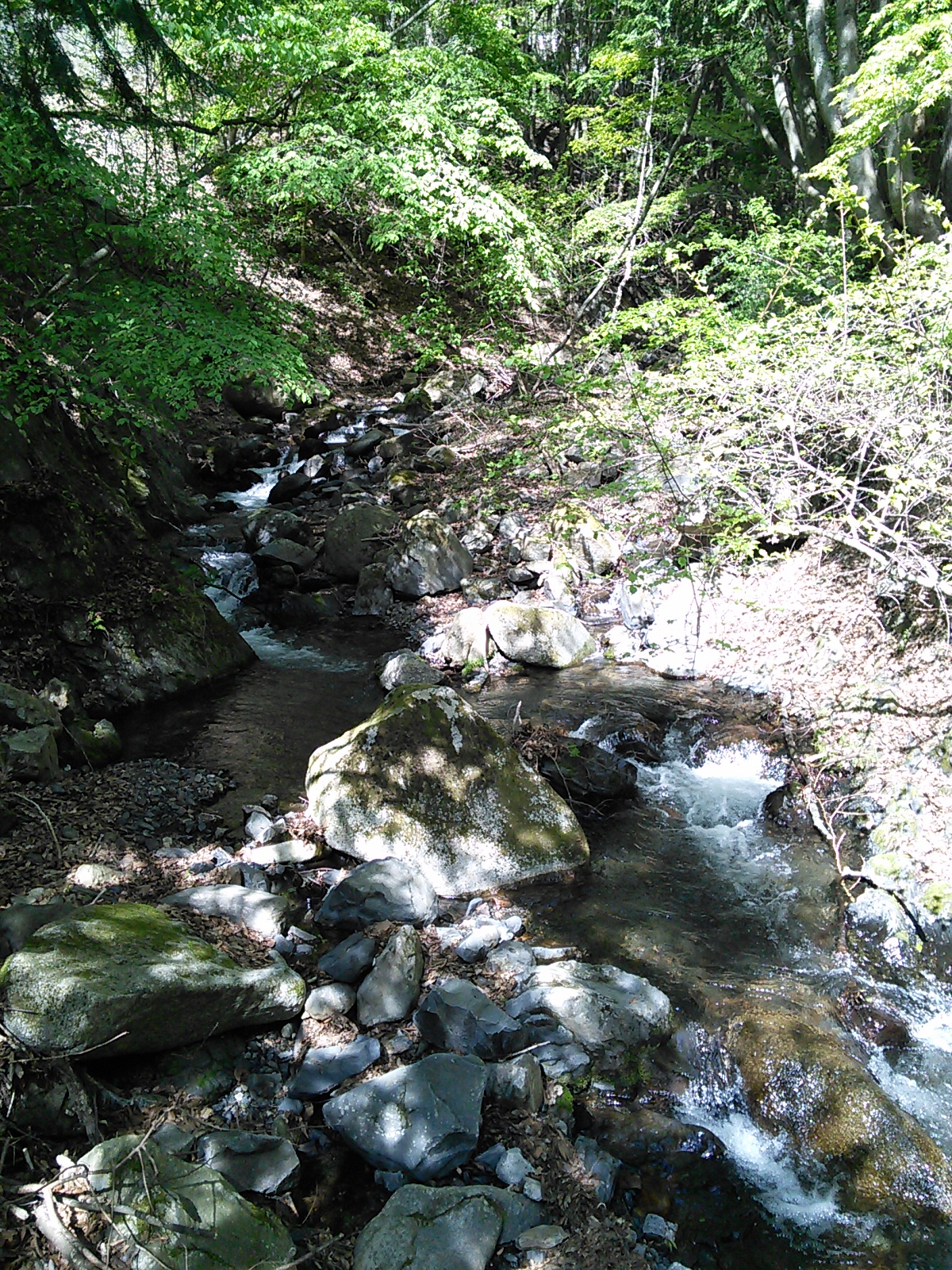 2015年5月2日 滝子山 大菩薩嶺 2015年05月03日 0 笹子駅から歩き始めました。舗装された林道歩きがしばらく続きます。 道証地蔵。ここから登山道になります。 道は沢沿いについています。この日は暑かったので、涼し気なのはいいですね。その後、沢沿いを離れて迂回路を行きます。斜面についたつづら折りの道がちょっと歩きにくい。汗をかきながら、青空と若葉の緑と、時折見える富士山を励みに登っていきます。 再び沢沿いの道に。澄んだ流れのそこで川砂がきらめいています。 頂上間近。木が切り払われて、広々とした道になっています。ときどき吹く風が心地よい。 山頂に到着。南に富士山。その手前に三つ峠。アンテナが立っているのは御巣鷹山ですね。北の大菩薩嶺の方向も展望が開けています。頂上は登山者で賑わっています。食事をしたり、景色を眺めたり、写真を撮ったり、思いおもいに時を過ごしています。一角に場所を見つけて、昼食にしました。頂上から少し引き返して、初狩駅の方向へ下山します。 日当りのいい南側の、広葉樹の斜面を下っていきます。新緑が綺麗ですが、ちょっと暑い。 檜平です。ここからも富士山がよく見えます。 下っていくと沢沿いの道になります。そのうち舗装道に出ました。藤沢川沿いに歩いていけば初狩駅方面に行けます。沢沿いの道と富士山の眺めが楽しめる山歩きでした。滝子山には四阿のようなものはなく、ベンチもほとんどありませんでした。人工物の少ないシンプルな山もいいものだと思います。 [0回]