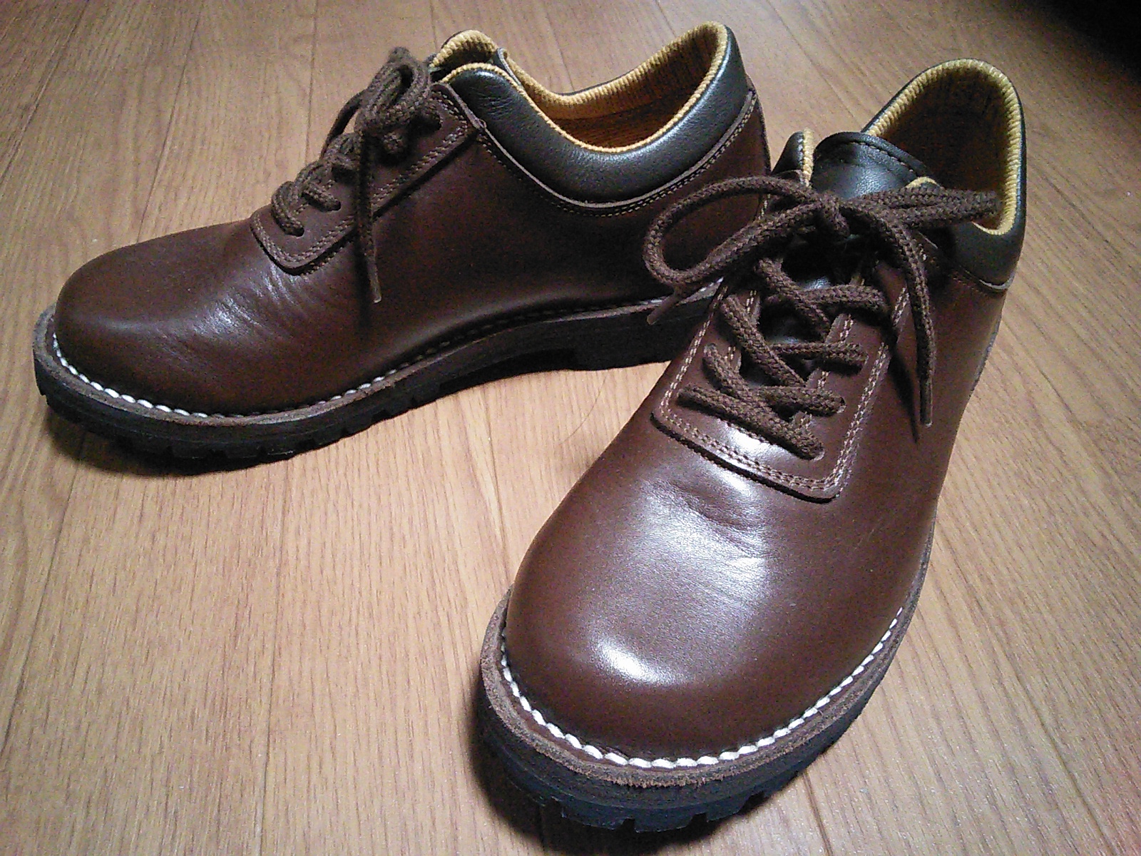 ゴロー「てつステッチダウン」 道具 2015年05月08日 0 これは登山靴店ゴローで作った「てつステッチダウン」という靴です。変な名前ですが、もともと「鉄人運動靴てつ」という製品があって、それのステッチダウン版なのでこの名前なのだと思われます。この店の命名はなかなか個性的ですね。街履きとして使うために買ったのですが、山歩きでも使えそうなガッチリした靴です。店のサイトによると重さは片方で520g。一応、量ってみましたが誤差は2〜3gでした。ソールはビブラム。ゴアテックス・ブーティーが入っているので防水性があります。透湿性もありますが、やはり多少は蒸れると言われました。注文すればブーティー無しでも作れるそうですが、値段は変わらないとのことで、折角なので入れてもらいました。色は黒、濃茶色、薄茶色から選べますが、濃茶色にしました。手入れは防水クリームか靴墨を塗るように言われました。靴墨を使う場合は、革が乾燥してきたらひび割れ防止にミンクオイルを塗る必要があります。山幸の登山靴を買ったときに勧められたコロニルの「ナノクリーム」を使うことにします。この店で靴を作るときは、店員さんが足の大きさや形を測って、各々に合わせた調整をしてくれます。左右の足のサイズが違う人には、左右で大きさを変えてくれます。私の場合は、親指が少し出っ張っているので、当たる部分の革を少し伸ばしてもらいました。また、実際に履いてみて問題があるときは調整してくれるそうです。山幸の登山靴の場合、履き始めはなんとも無いのですが、5時間以上歩いていると親指が当たるのが気になることがある(と言っても痛くなるほどではない)ので、親指の部分を広げたゴローの靴はより快適に履けそうです。ついでに山幸の登山靴の話を少々。この靴で山を歩いても足にマメを作ったことはなかったのですが、あるとき足の裏にひどいマメを作ってしまったことがあります。なぜだろうと考えたのですが、そのときは舗装路歩きが長かったことが関係ありそうでした。山道を歩くときは歩幅を小さくして、足の裏全体をべたっと着地させる歩き方をするのですが、舗装された道を歩くときに無意識にモードが変わって、歩幅広めで、踵で着地してから重心を爪先の方へ移動させて、最後に蹴り出すという普通の歩き方になってしまったのが原因だろうと思い至りました。それ以来、歩き方に気をつけるようにしましたが、その後マメができたことはありません。扱いが難しい靴だとも言えるでしょうし、道具とは本来そうしたものだとも言えるでしょう。正しく扱えば、正しく応えてくれます。現代的なシューズも便利なので併用していますが…。山幸「オリジナル登山靴」梅雨で活躍「てつステッチダウン」「てつステッチダウン」の撥水処理ゴロー「S8」 [2回]PR